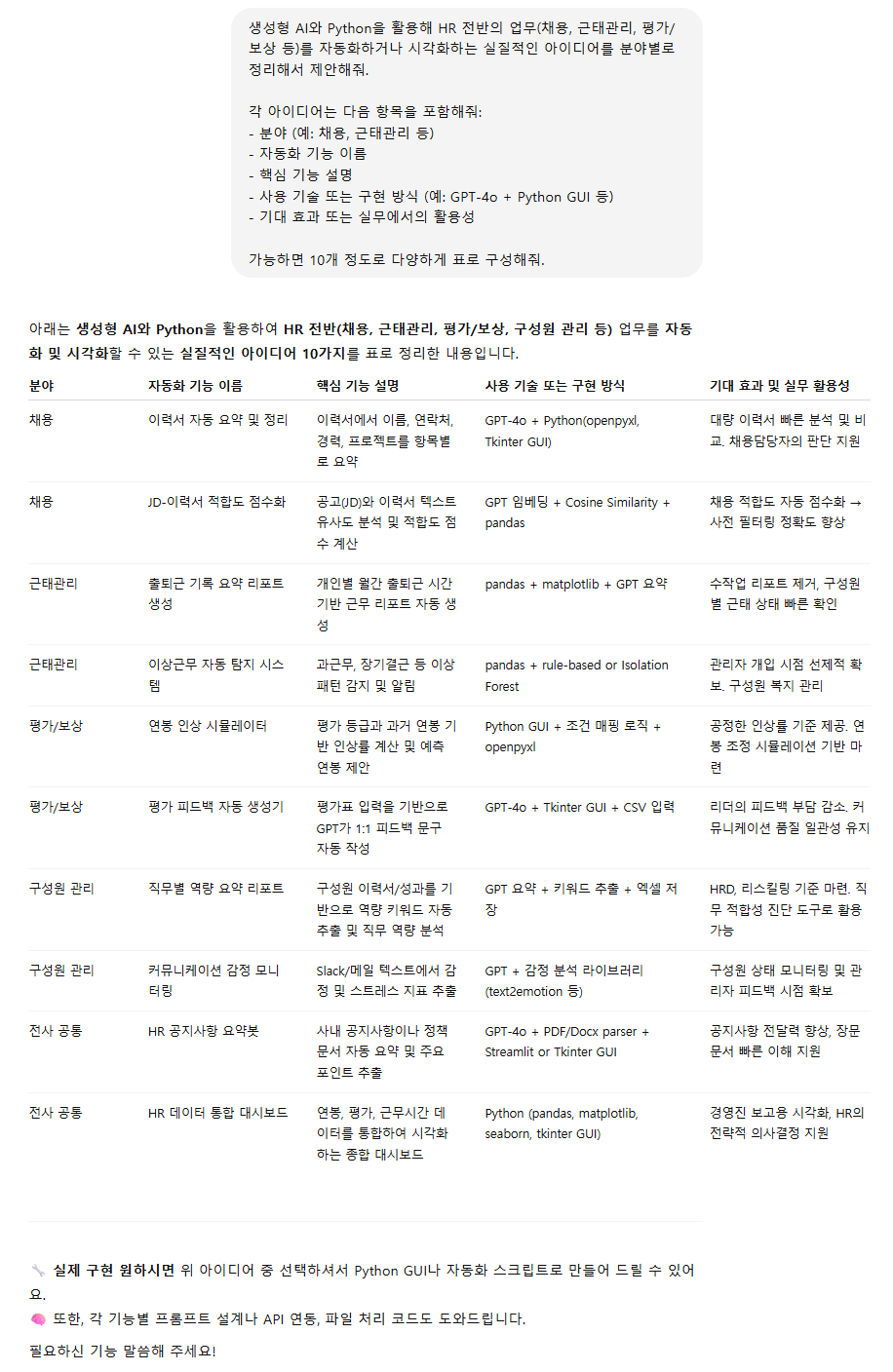1. HR 전반의 업무 자동화 아이디어 제안 받기