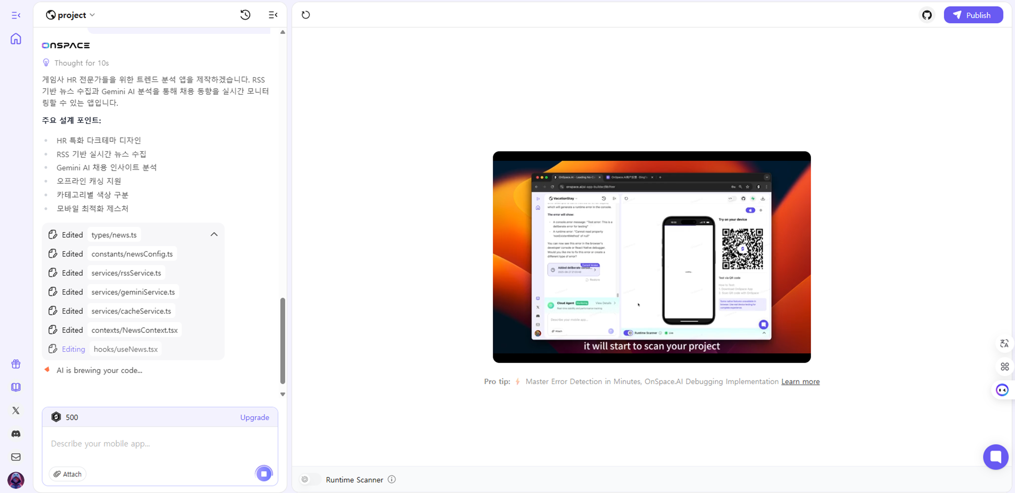 온스페이스(OnSpace) 분석: AI 기반 노코드 앱(Android, iOS) 애플리케이션 개발 도구