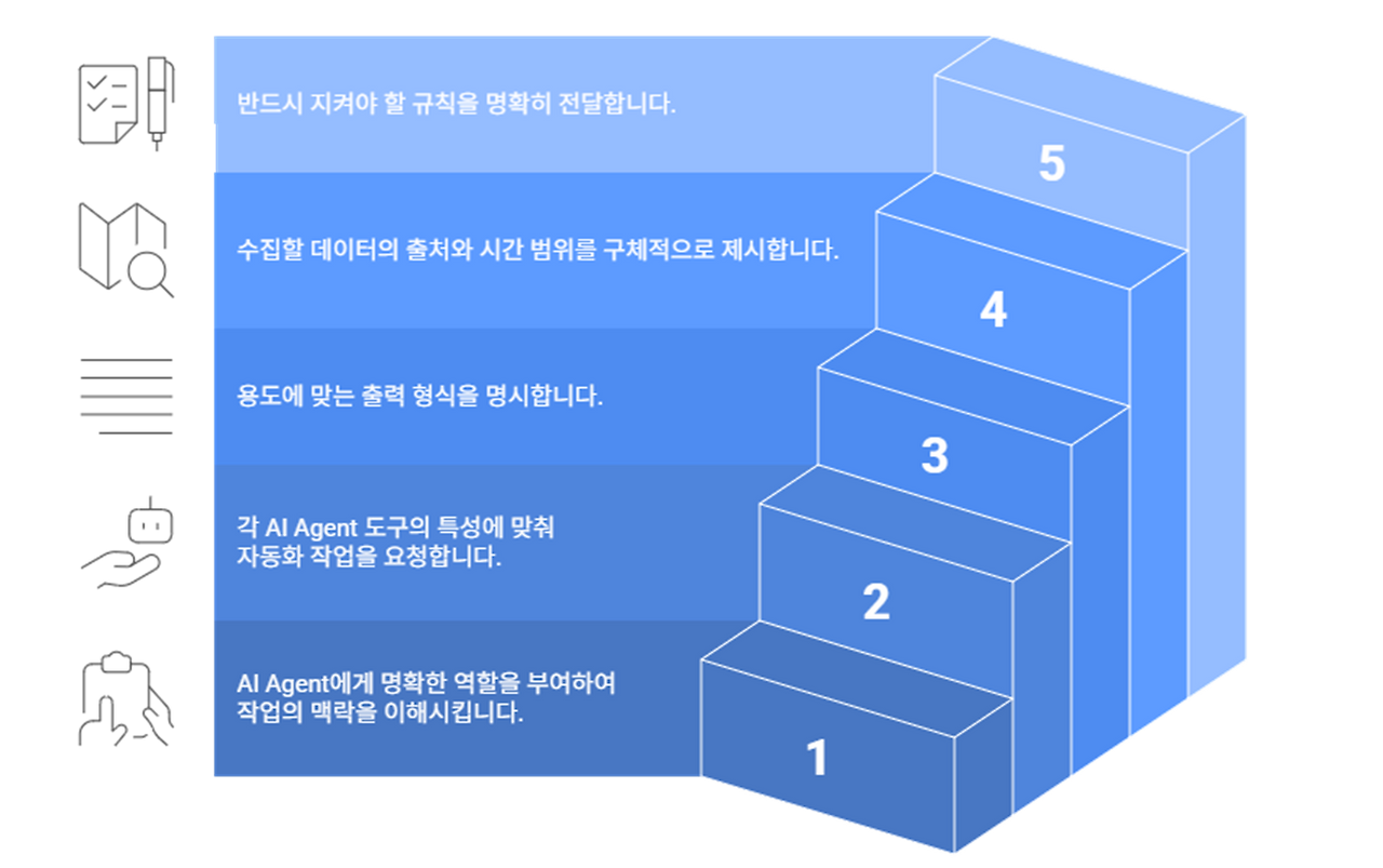 1️⃣ 역할 부여: AI Agent에게 명확한 역할을 부여하여 맥락을 이해시킵니다.