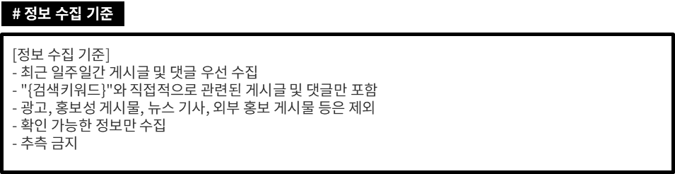 - 예시: "검색 키워드와 관련된 게시글만 수집해줘"