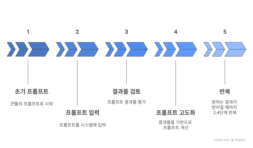 출력 결과를 확인하고 부족한 부분을 보완하는 반복 프로세스를 통해 점진적으로 정확도를 높여나가게 됩니다.